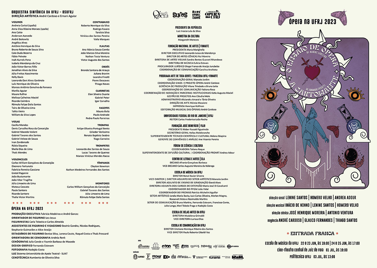 Apresentação da ópera “A Cartomante”, de Eduardo Frigatti, no Salão Leopoldo Miguez da Escola de Música da UFRJ, em 24 e 25 de junho de 2023.