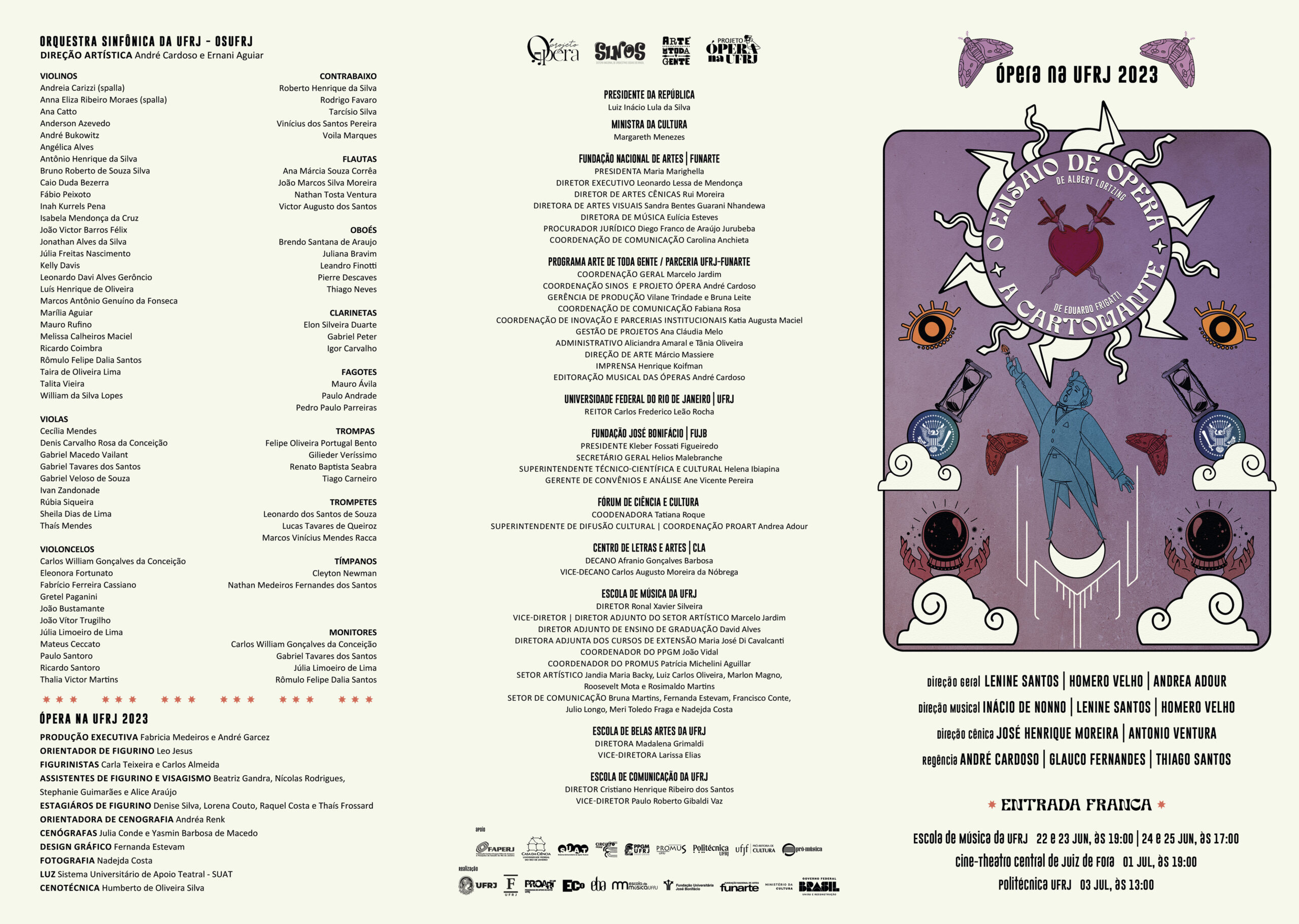 Apresentação da ópera “A Cartomante”, de Eduardo Frigatti, no Salão Leopoldo Miguez da Escola de Música da UFRJ, em 24 e 25 de junho de 2023.
